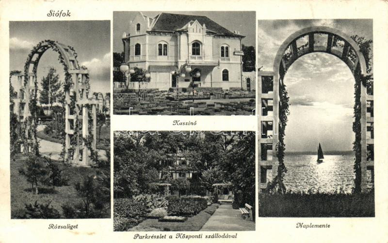 Siófok, Kaszinó, Rózsaliget, Központi szálloda (EK) https://www.darabanth.com/de/223-Fernauktion/223.0/Ansichtskarten/Ungarn~20006/Siofok-Kaszino-Rozsaliget-Kozponti-szalloda-EK~II971698