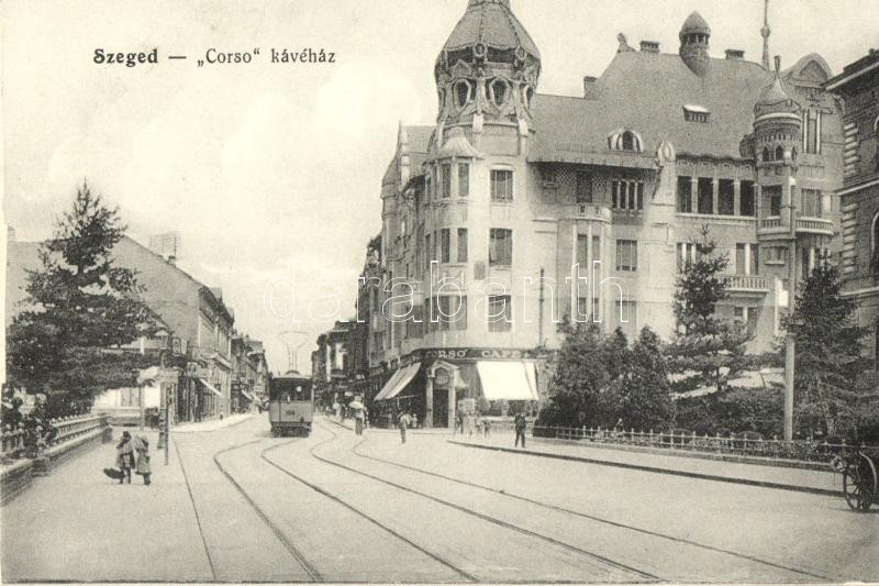 Szeged, Corsó kávéház, villamos; Grünwald Herman kiadása https://www.darabanth.com/de/223-Fernauktion/223.0/Ansichtskarten/Ungarn~20006/Szeged-Corso-kavehaz-villamos-Grunwald-Herman-kiadasa~II973403