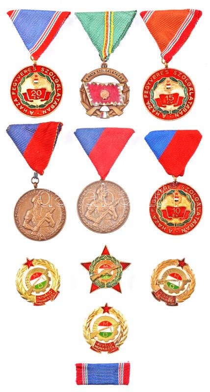 Beschreibung: 10db szocialista kitüntetés, benne a "Haza fegyveres szolgálatában", a "Haza szolgálatáért", "Munkásőr" kitüntetések T:vegyes
