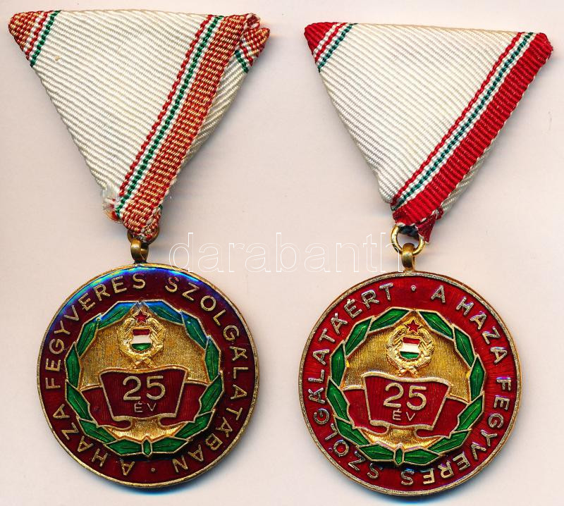 ~1970. "A Haza Fegyveres Szolgálatában" 25 év után mellszalagon (2x) T... https://www.darabanth.com/de/223-Fernauktion/223.0/Numismatik/Faleristik-Auszeichnungen-Medaillen-Ordnen~10018/7E1970-A-Haza-Fegyveres-Szolgalataban-25-ev-utan-mellszalagon-2x-T2~II969030