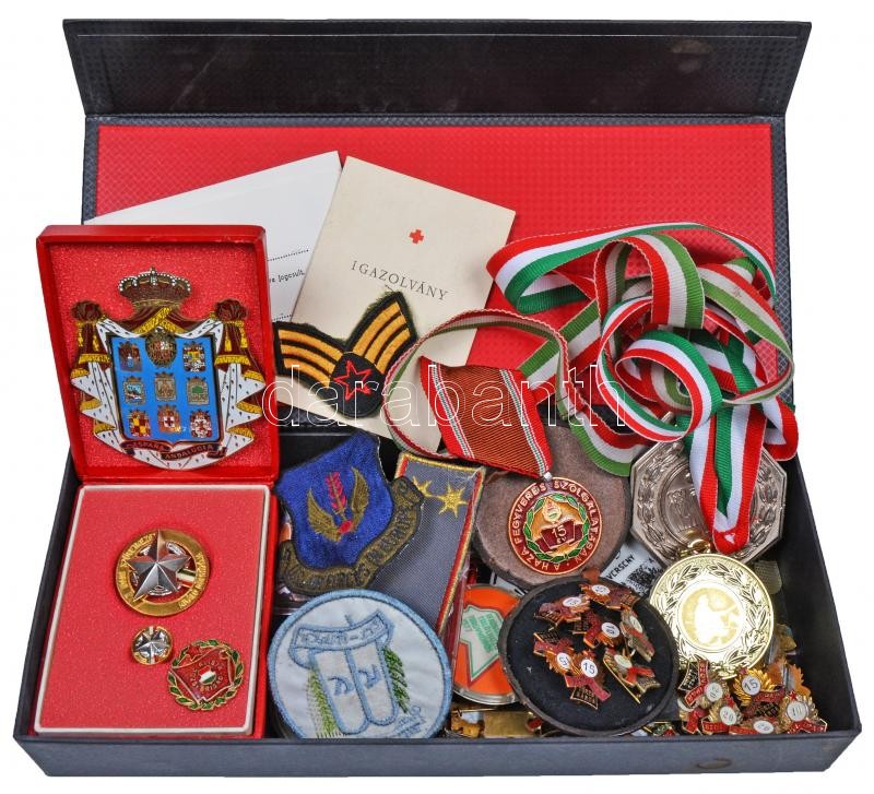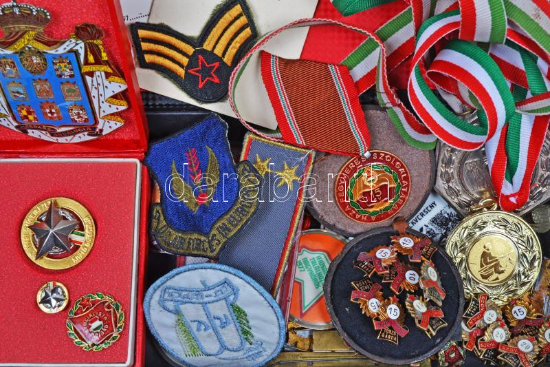 Beschreibung: Doboznyi vegyes kitüntetés, jelvény, díjérem főleg a szocialista időszakból, közte zománcozott és tokos darabok is T:vegyes