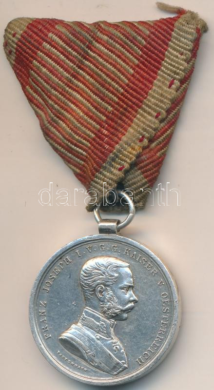 Hungary 1914. "Silver Gallantry Medal, IInd Class" Ag decoration without hallmark with ribbon. Sign: Tautenhayn C:VF edge error