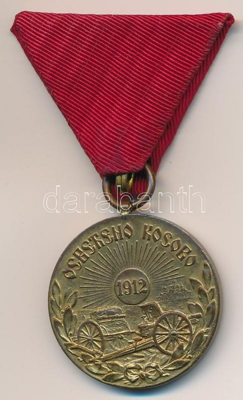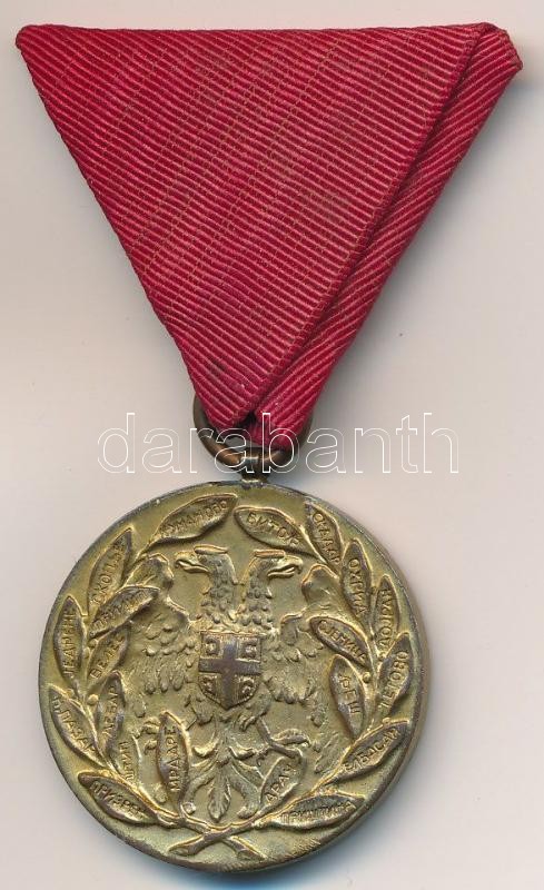 Szerbia 1912. "Első Balkán-háború Emlékérem" aranyozott Br emlékérem mellszalagon. Szign.: Huguenin T:2-