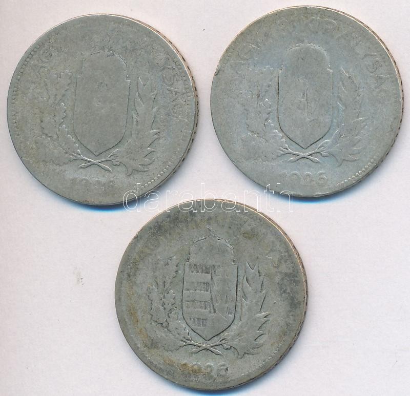 1926. 1P Ag (3x) T:2-,3,3- https://www.darabanth.com/de/223-Fernauktion/223.0/Numismatik/Ungarische-Munzen~10009/1926-1P-Ag-3x-T2-3-3-~II972893