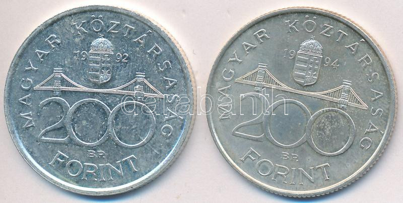 Beschreibung: 1992-1994. 200Ft Ag (2x) "MNB" + "Deák" T:2