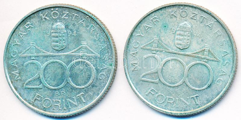 1994. 200Ft Ag "Deák" (2x) T:2- https://www.darabanth.com/de/223-Fernauktion/223.0/Numismatik/Ungarische-Munzen~10009/1994-200Ft-Ag-Deak-2x-T2-~II969604