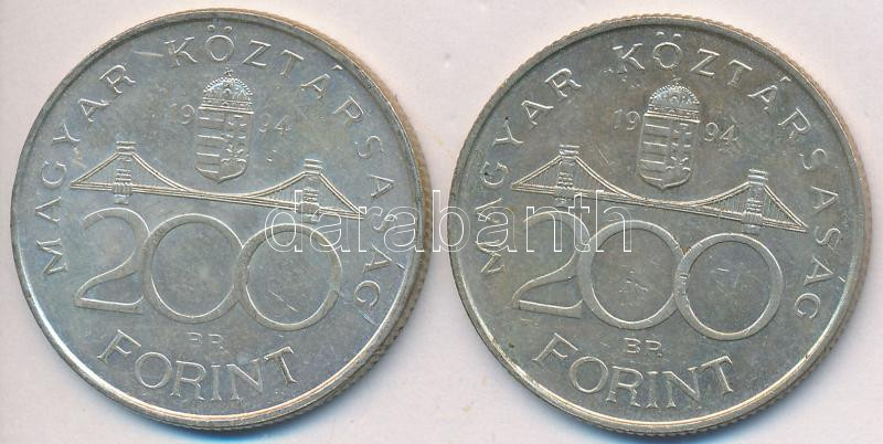 1994. 200Ft Ag "Deák" (2x) T:2 https://www.darabanth.com/de/223-Fernauktion/223.0/Numismatik/Ungarische-Munzen~10009/1994-200Ft-Ag-Deak-2x-T2~II972847