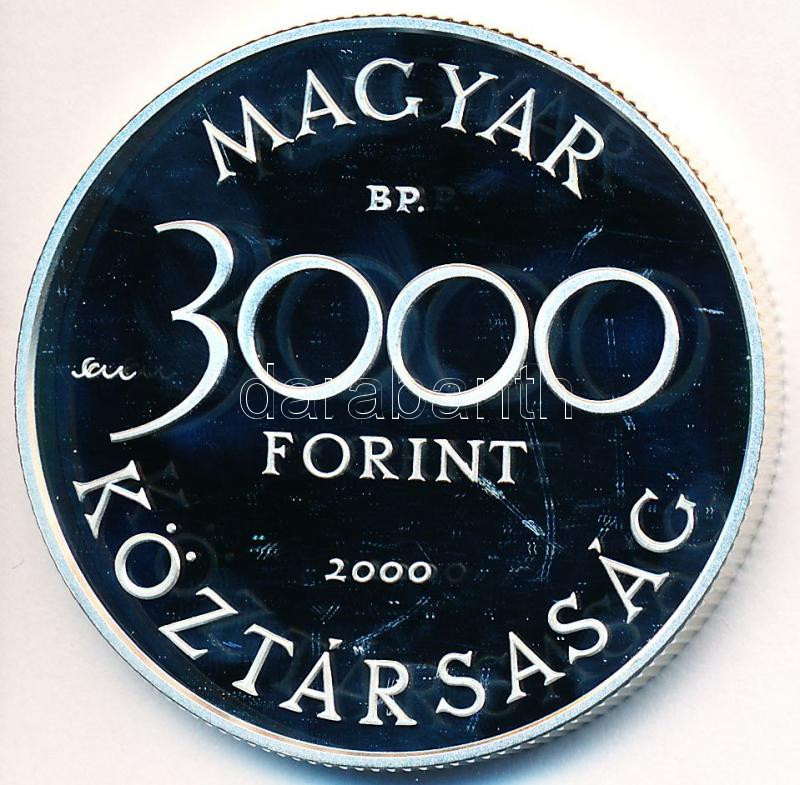 Beschreibung: 2000. 3000Ft Ag "Veszélyeztetett állatvilág - hód" T:PP