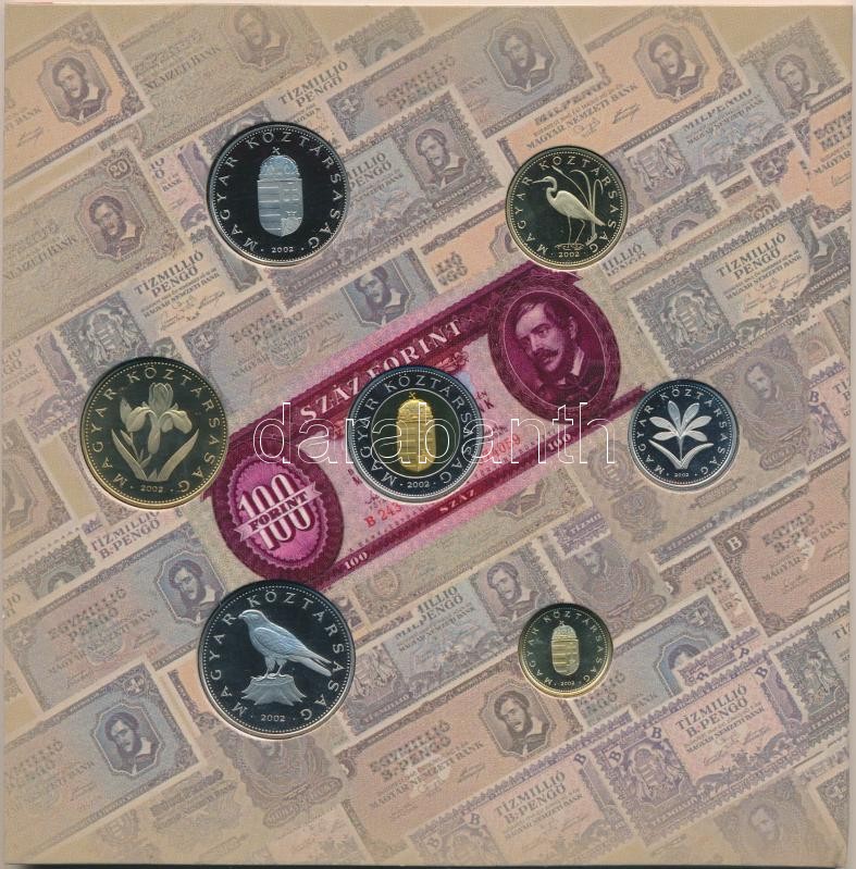 Beschreibung: 2002. 1Ft-100Ft 8klf db, szettben, benne 100Ft "Kossuth" T:PP