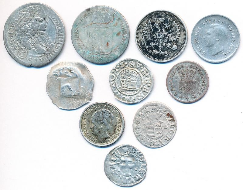 Vegyes: 10db vegyes magyar és külföldi kis ezüstpénz, közte 1373-1382. Denár Ag "I. Nagy Lajos" (0.46g), Oroszország 1915. 10k Ag T:vegyes