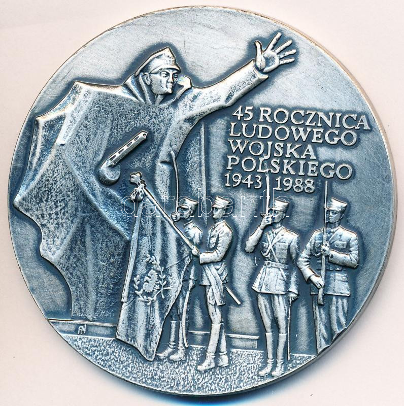 Lengyelország 1988. "45 éves a Lengyel Néphadsereg" fém emlékérem tokban. Szign.: AN (Andrzej Nowakowski) (69,5mm) T:1,1-