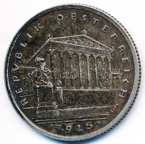 Austria 1925. 1 Schilling Ag C:XF,VF https://www.darabanth.com/de/223-Fernauktion/223.0/Numismatik/Weltweit-Munzen~10013/Ausztria-1925-1Sch-Ag-T2-2--3Cbr3EAustria-1925-1-Schilling-Ag-CXF-VF~II967271