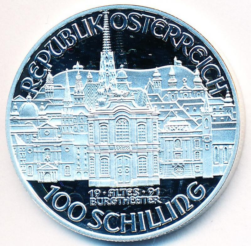 Austria 1991. 100 Schilling Ag "200th Anniversary - Death of Mozart" with certificate in original velvet and paper cases C:PP
