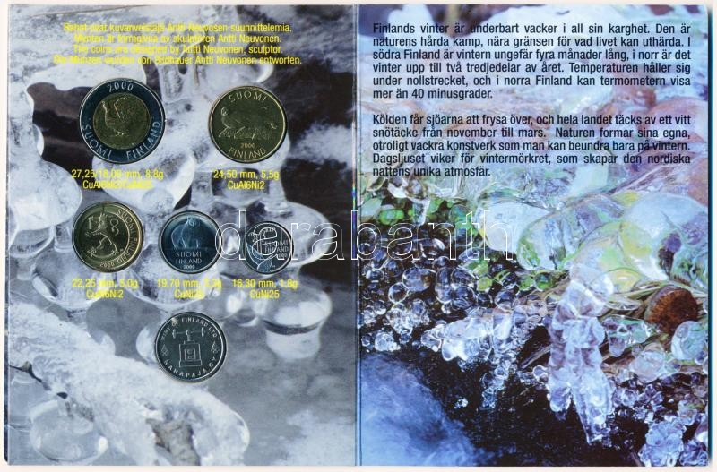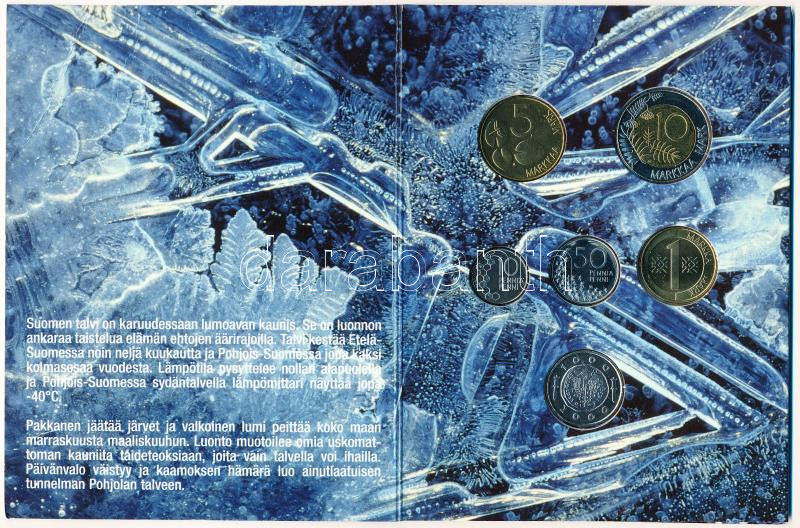 Finnország 2000. 10p-10M (5xklf) + "Finn Pénzverde" emlékérem, forgalmi sor dísztokban T:1