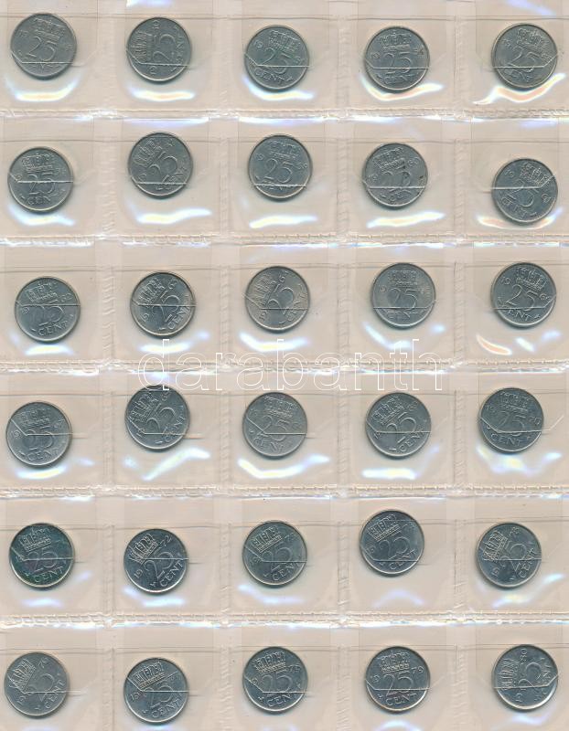 Netherlands 1877-1975. 1 Cent (61x) + 1880-1941. 2-1/2 Cents (9x) + 1908-1980. 5 Cents (36x) + 1941-1980. 10 Cents (34x) + 1942-1980. 25 Cents (31x) + 1967-1987. 1 Gulden (17x) + 1969-1982. 2-1/2 Gulden in collectors album C:mixed