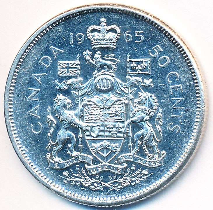 Canada 1965. 50 Cents Ag "Elizabeth II" C:XF