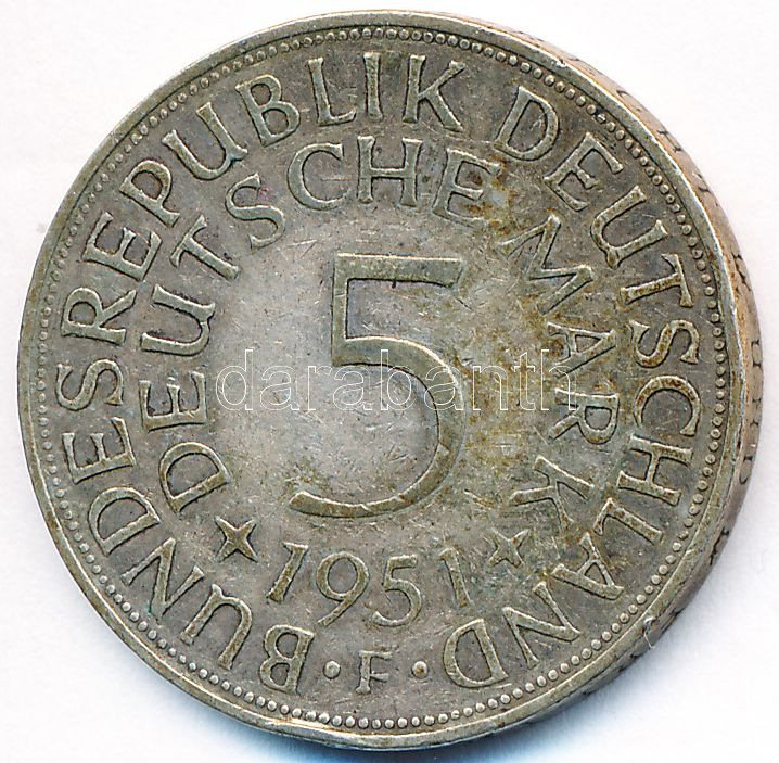 GFR 1951F 5 Mark Ag C:XF,VF small edge... https://www.darabanth.com/de/223-Fernauktion/223.0/Numismatik/Weltweit-Munzen~10013/NSZK-1951F-5M-Ag-T2-2-kis-ph-3Cbr3EGFR-1951F-5-Mark-Ag-CXF-VF-small-edge-error-3Cbr3EKrause-KM112~II967849