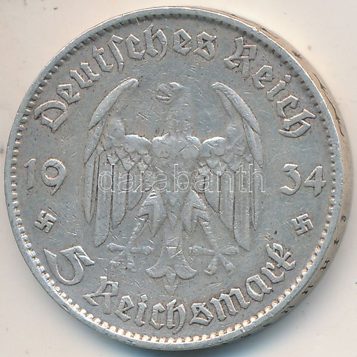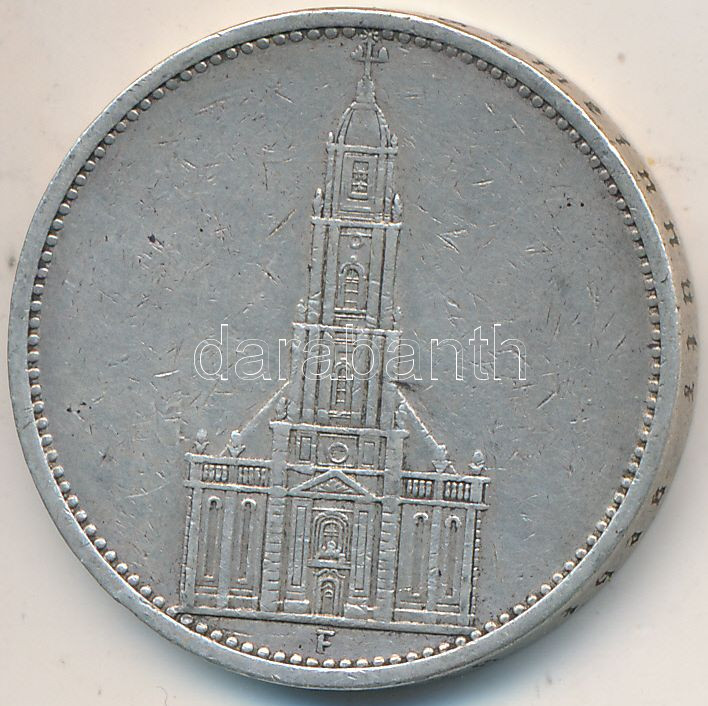 German Third Rei... https://www.darabanth.com/de/223-Fernauktion/223.0/Numismatik/Weltweit-Munzen~10013/Nemet-3-Birodalom-1934F-5M-Ag-Garnisonkirche-T2--3Cbr3EGerman-Third-Reich-1934F-5-Mark-Ag-Garn~II971964