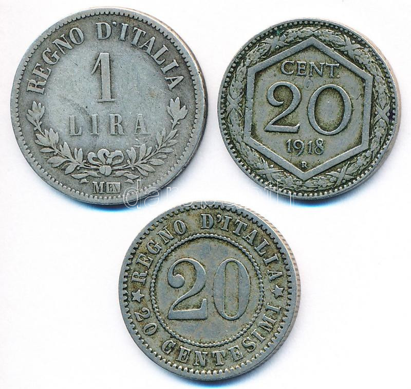 Italy 1863. 1 Lira Ag "Vittorio Emanuele II" + 1894R-1918R 20 Centesimi Cu-Ni (2x) C:VF,F