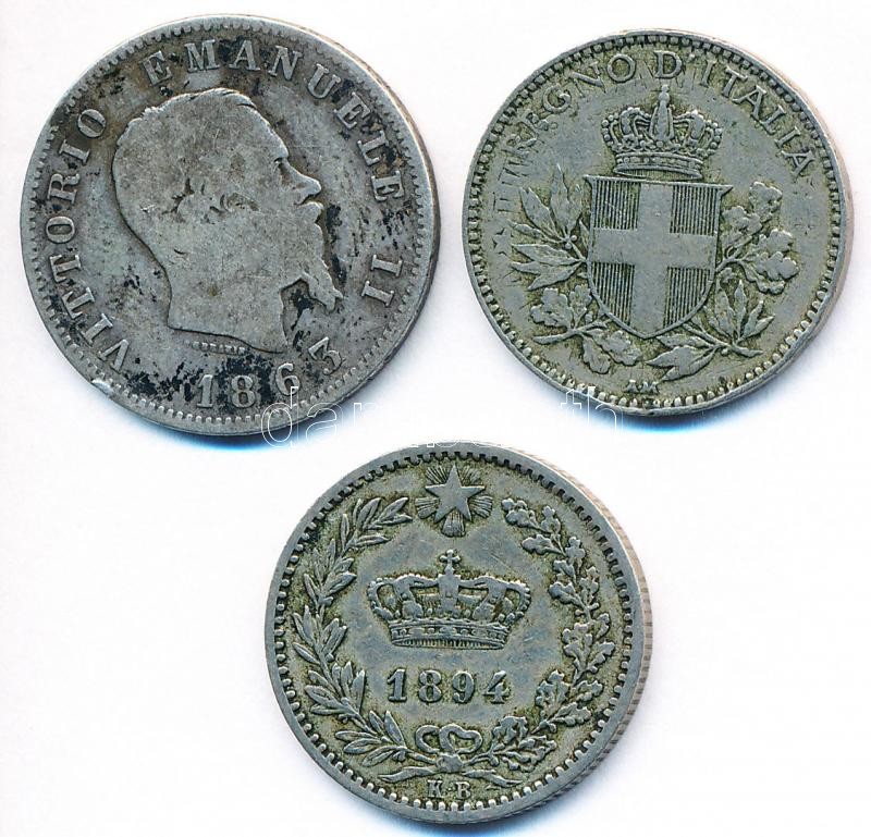 Beschreibung: Olaszország 1863. 1L Ag "II. Viktor Emánuel" + 1894R-1918R 20c Cu-Ni (2x) T:2-,3