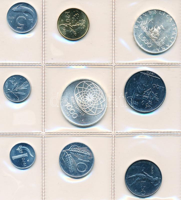 Olaszország 1970R 1L-1000L Ag 9db-os forgalmi sor eredeti bontatlan nejlontokban T:1