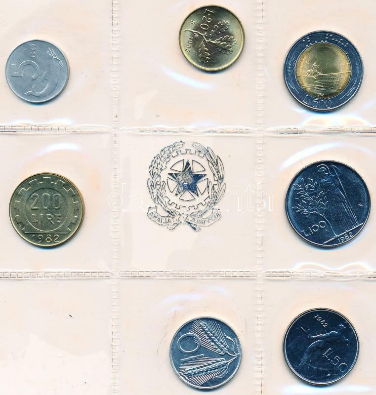 Olaszország 1982R 5L-500L 7db-os forgalmi sor eredeti bontatlan nejlontokban T:1
