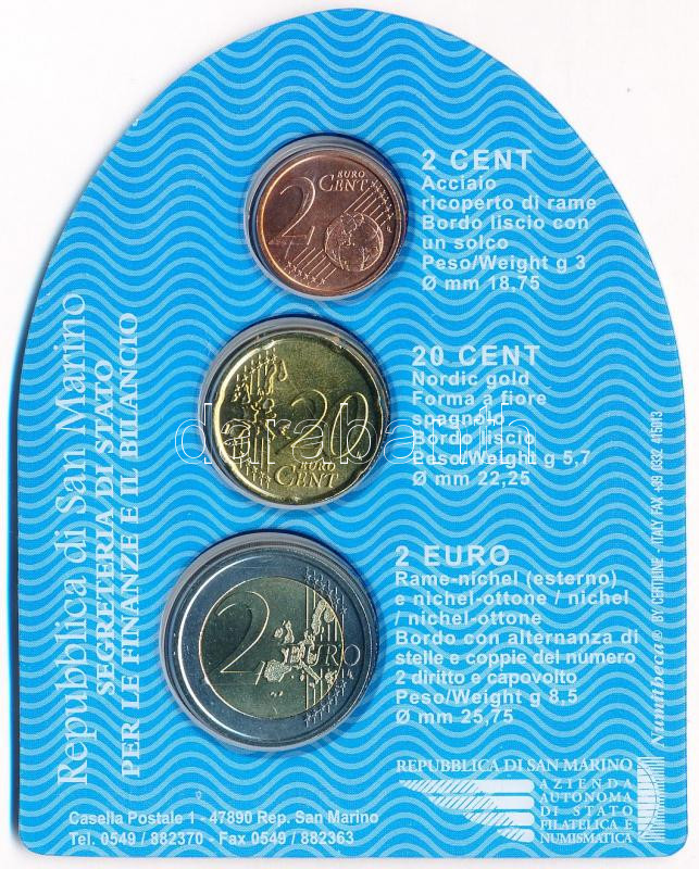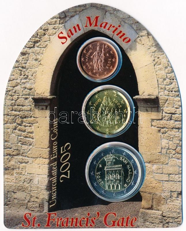 San Marino 2005. 2 Cent + 20 Cent + 2 Euro "St. Francis Gate" coin set in case C:UNC