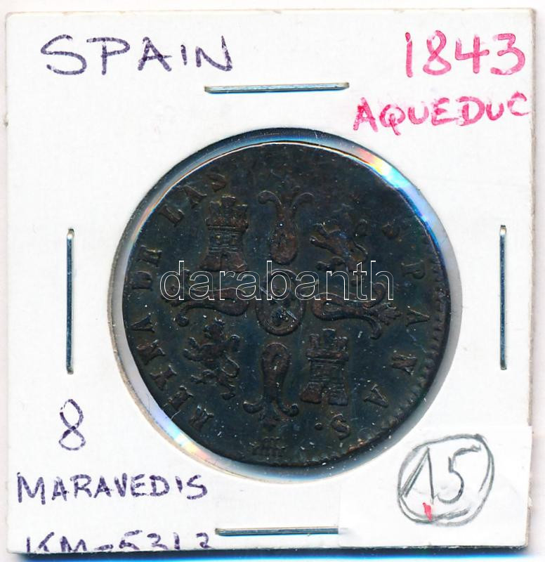 Spain 1843. 8 Maravedis Cu "Isabel II" C:VF,F