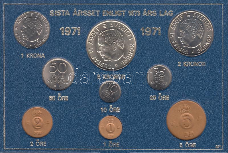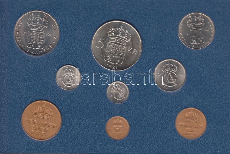 Svédország 1971. 1ö-5K 9xklf db-ból álló forgalmi szett műanyag tokba... https://www.darabanth.com/de/223-Fernauktion/223.0/Numismatik/Weltweit-Munzen~10013/Svedorszag-1971-1o-5K-9xklf-db-bol-allo-forgalmi-szett-muanyag-tokban-T1-3Cbr3ESweden-1971~II701623