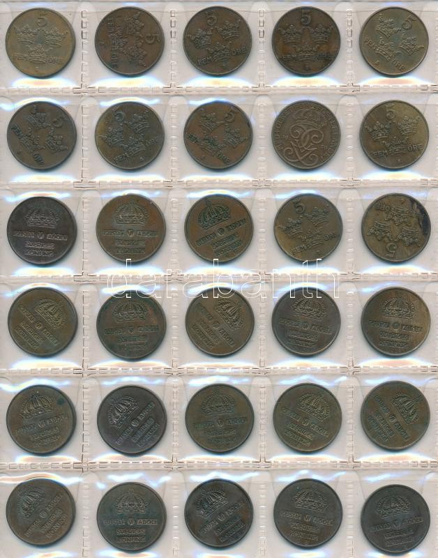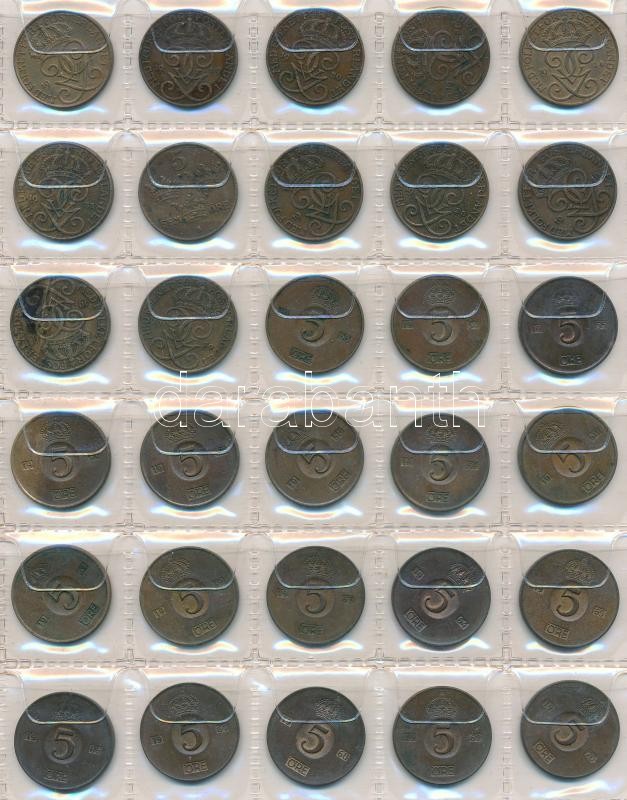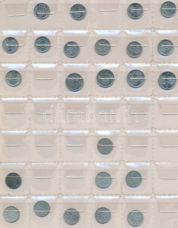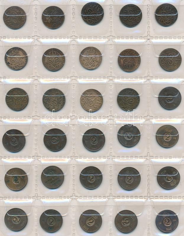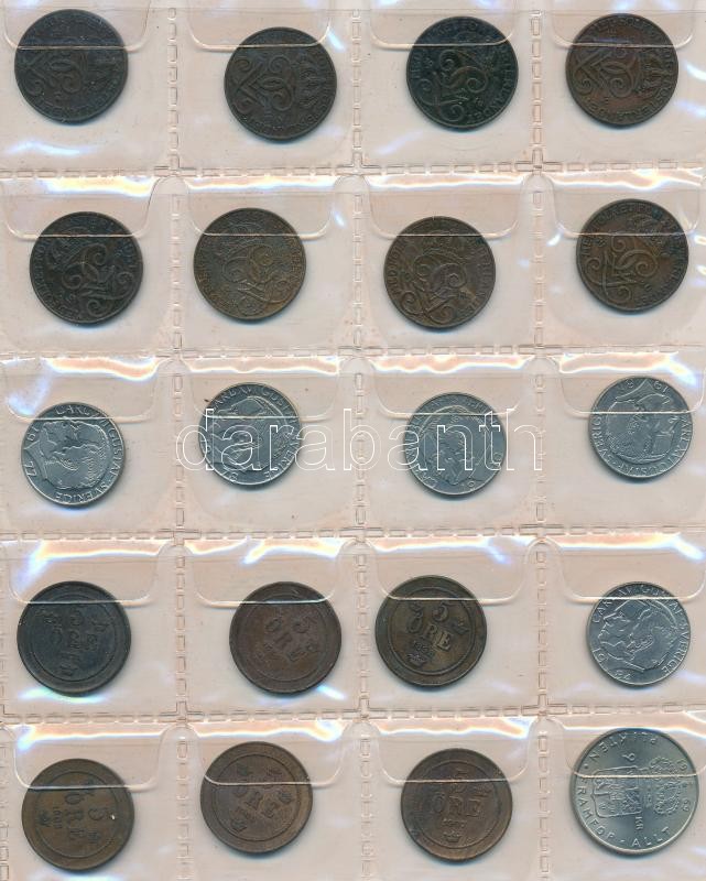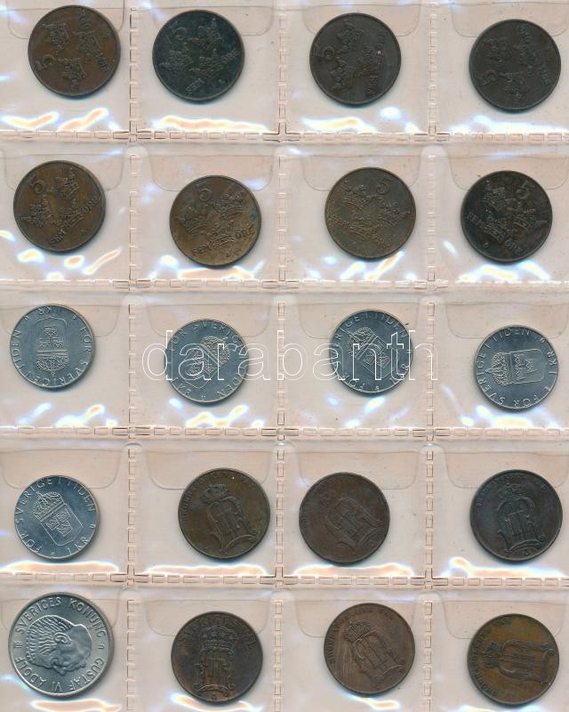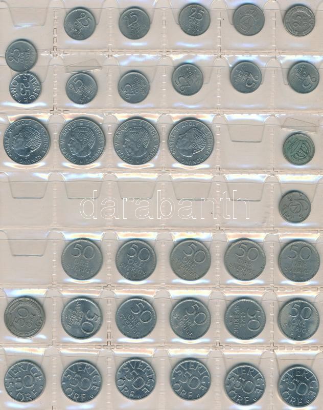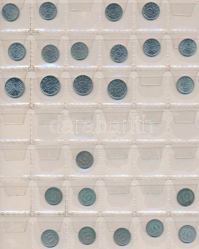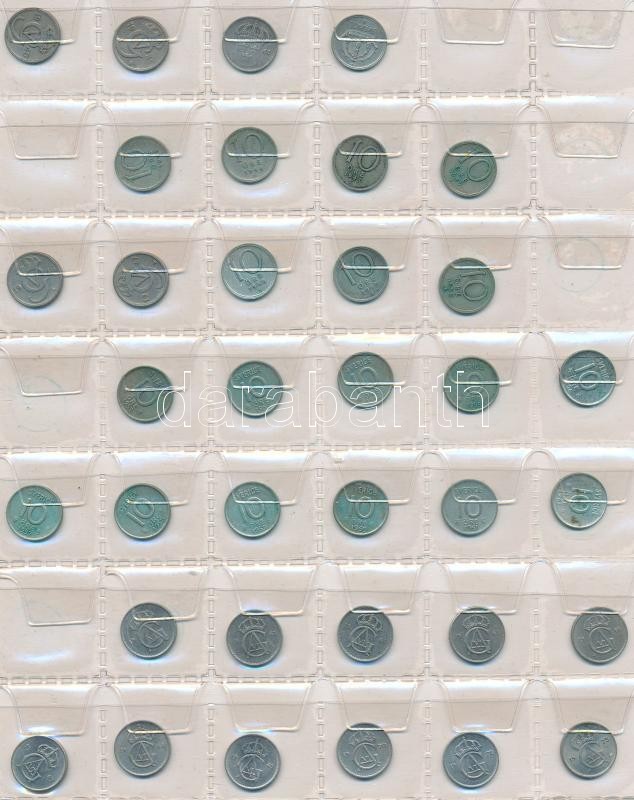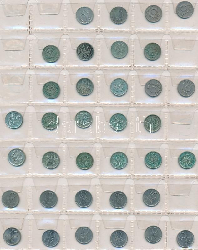 Svédország 240db vegyes fémpénz albumba rendezve, közte ~30db kis ezüstpénz! T:vegyes