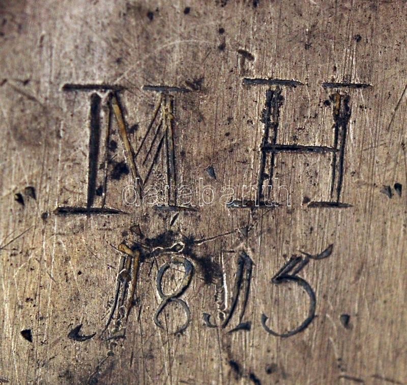 Antik ón gyömbértartó csavaros fedéllel, M.H. 1815. gravírozással, hor... https://www.darabanth.com/de/224-Fernauktion/224.0/Andere-Sammelgebiete/Antik~7/Antik-on-gyombertarto-csavaros-fedellel-MH-1815-gravirozassal-horpadassal-m-25-cm~II985021