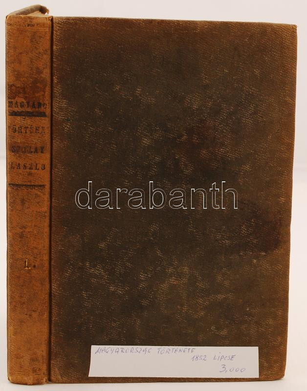 Szalay László: Magyarország története. I-VI. Első könyv:884-997, második könyv: 997-1038, harmadik könyv:1038-1077, negyedik könyv:1077-1144, ötödik könyv:1114-1196, hatodik: 1196-1222. Lipcse, 1852, Geibel Károly. 310 oldal. Egészvászon kötésben, kopott állapotban