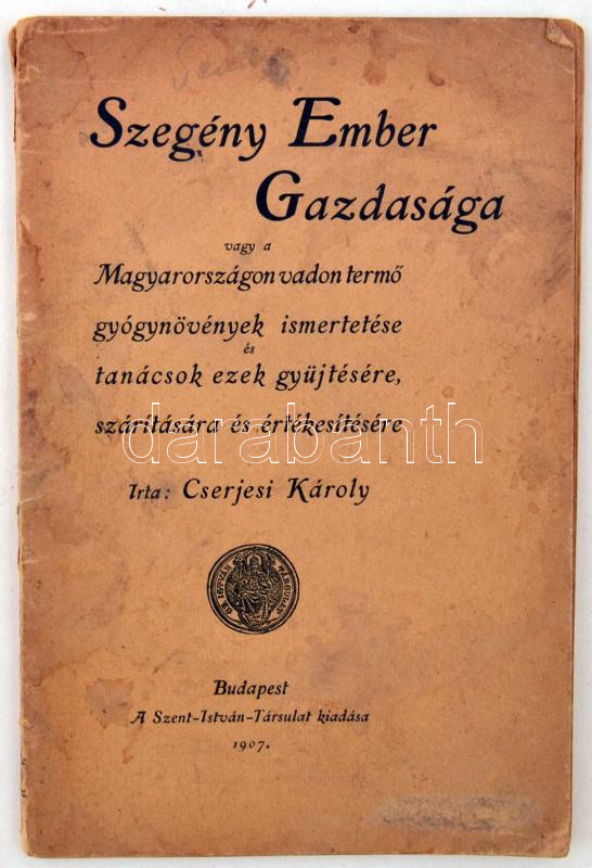 Cserjesi Károly: Szegény ember gazdasága vagy a Magyarországon vadon termő gyógynövények ismertetése és tanácsok ezek gyűjtésére,szárítására és értékesítésére. Bp. 1907.Szent-István-Társulat. Szövegközti rajzokkal. Kiadói papírborítóban. Közepes állapotban.