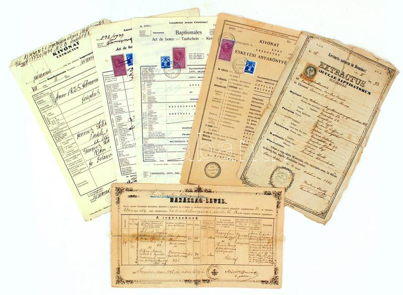 1885-1939 6 db vegyes okmány(házasságlevél, esketési anyakönyvi kivona... https://www.darabanth.com/de/224-Fernauktion/224.0/Andere-Sammelgebiete/Dokument~27/1885-1939-6-db-vegyes-okmanyhazassaglevel-esketesi-anyakonyvi-kivonat-keresztlevel-stb~II980450