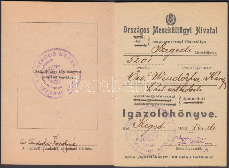 1921 Szeged, Az Országos Menekültügyi Hivatal igazolókönyve kelet-magy... https://www.darabanth.com/de/224-Fernauktion/224.0/Andere-Sammelgebiete/Dokument~27/1921-Szeged-Az-Orszagos-Menekultugyi-Hivatal-igazolokonyve-kelet-magyarorszagi-kiutasitott-s~II984705