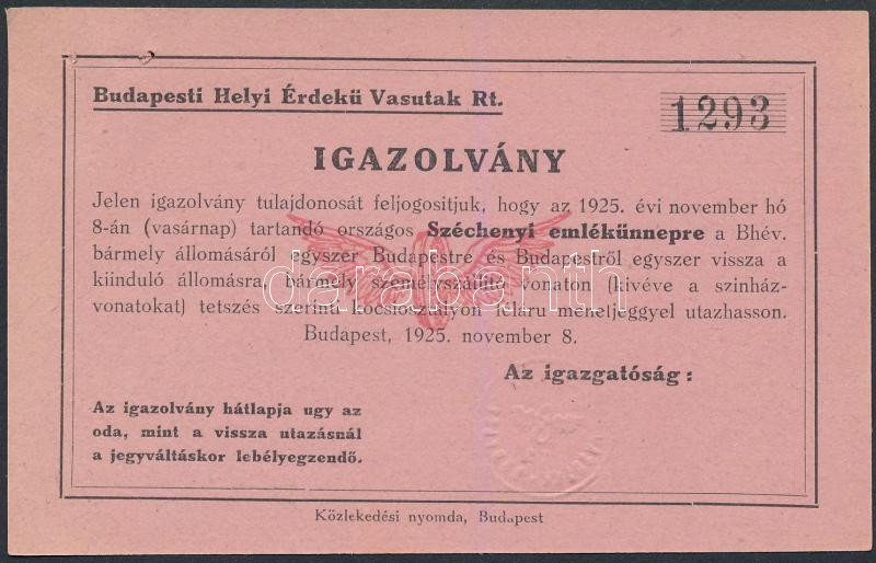 1925 Bp., Igazolvány a Budapesti Helyi Érdekű Vasutaktól a Széchenyi ü... https://www.darabanth.com/de/224-Fernauktion/224.0/Andere-Sammelgebiete/Dokument~27/1925-Bp-Igazolvany-a-Budapesti-Helyi-Erdeku-Vasutaktol-a-Szechenyi-unnepre-utazashoz~II985121