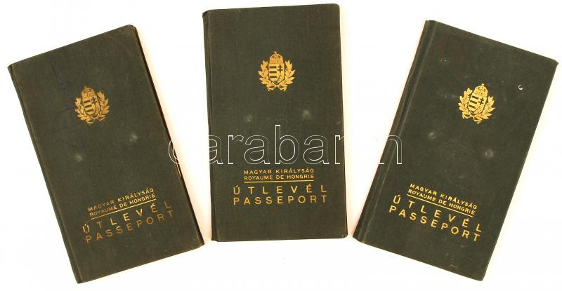 Beschreibung: 1938-1949 A Magyar Királyság által kiadott 3 db útlevél /