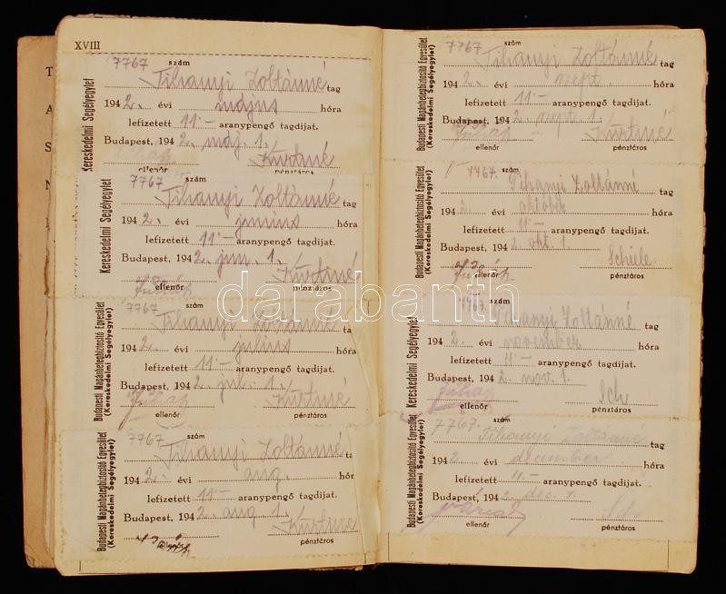 1939 Vénykönyv tele Kereskedelmi Segélyegylet matricával, ill, kitöltö... https://www.darabanth.com/de/224-Fernauktion/224.0/Andere-Sammelgebiete/Dokument~27/1939-Venykonyv-tele-Kereskedelmi-Segelyegylet-matricaval-ill-kitoltott-venymasolatokkal~II984236