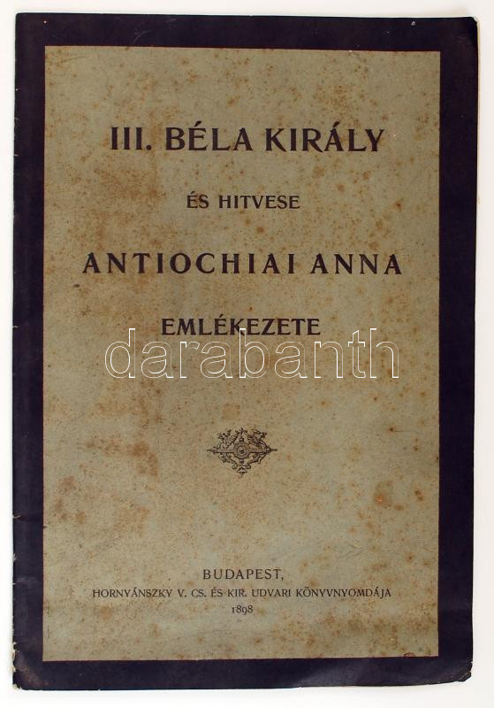III. Béla király és hitvese, Antiochiai Anna emlékezete. Bp., 1898, Hornyánszky, függelékként jegyzőkönyv a III. Béla és felesége, Antiochiai Anna földi maradványainak áthelyezése tárgyában tartott ülésről.