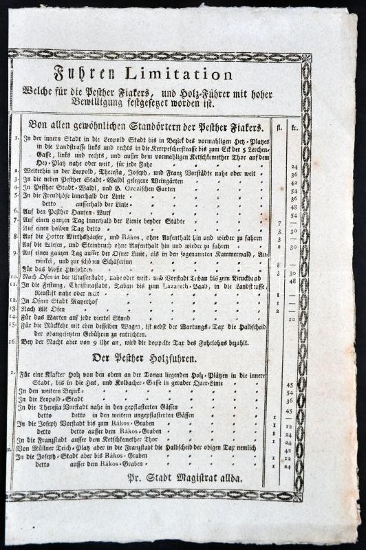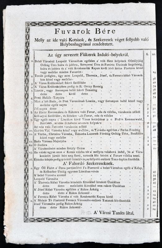 cca 1830-1840 Pest, Buda, A városi tanács által kiadott fuvardíjszabás... https://www.darabanth.com/de/224-Fernauktion/224.0/Andere-Sammelgebiete/Drucksachen~6/cca-1830-1840-Pest-Buda-A-varosi-tanacs-altal-kiadott-fuvardijszabasi-tajekoztato-tabla~II985424
