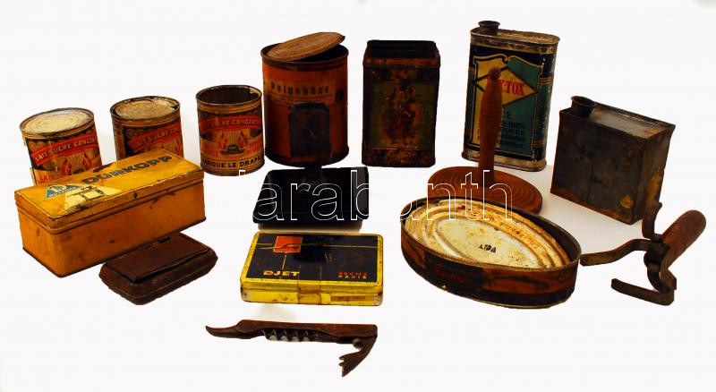12 db régi fém doboz + egyéb régi tárgyak (bornyitó, stb.) https://www.darabanth.com/de/224-Fernauktion/224.0/Andere-Sammelgebiete/Flohmarkt~21/12-db-regi-fem-doboz-plus-egyeb-regi-targyak-bornyito-stb~II984816