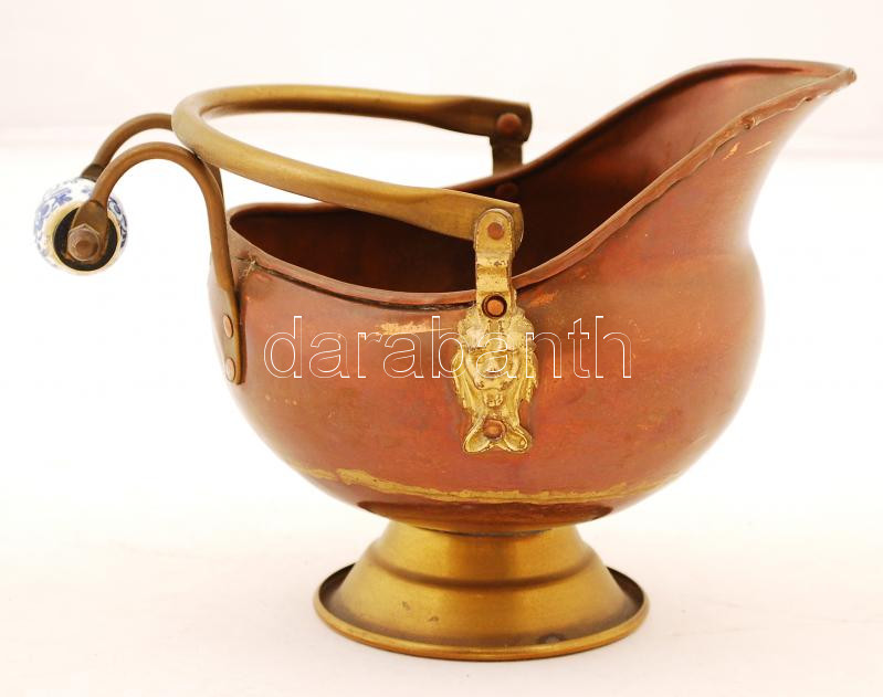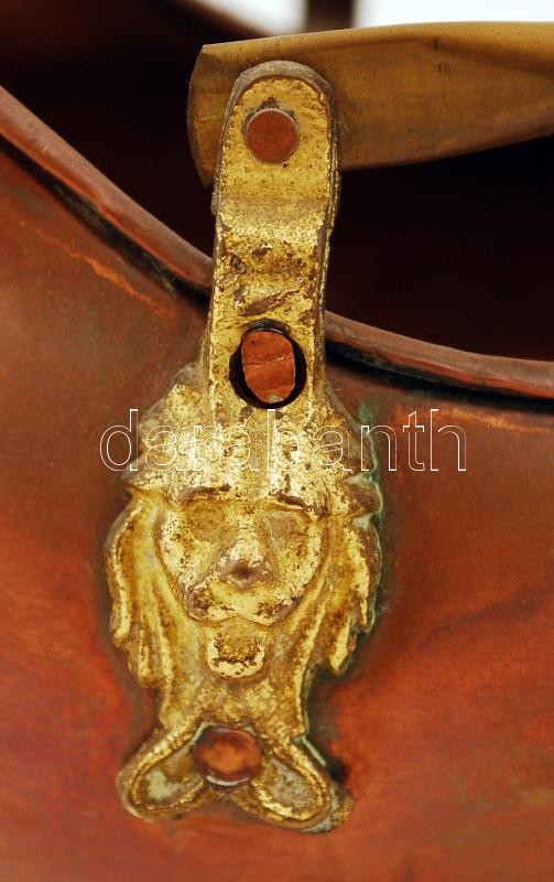 Oroszlánfejekkel díszített réz kiöntő, porcelán fogantyúval, m: 14 cm https://www.darabanth.com/de/224-Fernauktion/224.0/Andere-Sammelgebiete/Flohmarkt~21/Oroszlanfejekkel-diszitett-rez-kionto-porcelan-fogantyuval-m-14-cm~II981868