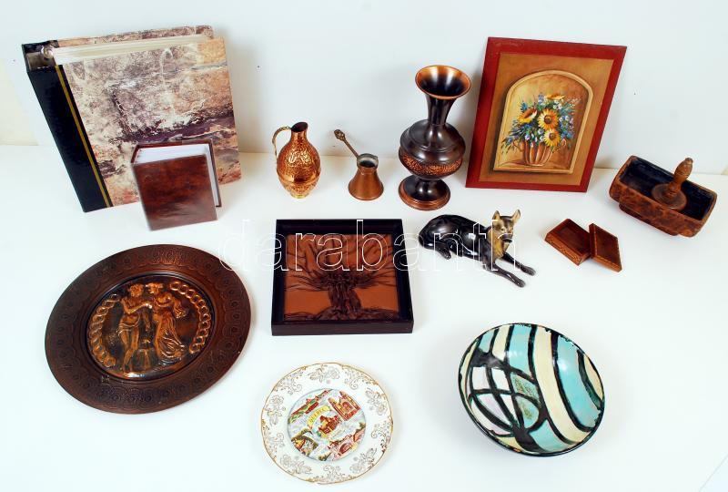 Beschreibung: Vegyes bolha tétel: üres fotó album, kerámia, porcelán tárgyak, stb, összesen:14 db