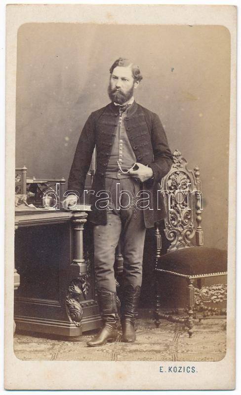 cca 1860-1870 Kőrössy Imre (Pápa, 1827 – Felsőőrs, 1883) ügyvéd, 1848-1849-ben honvéd majd főhadnagy, a vizitkártya méretű fénykép E. Kozics pozsonyi műtermében készült, keményhátú, 10x6 cm