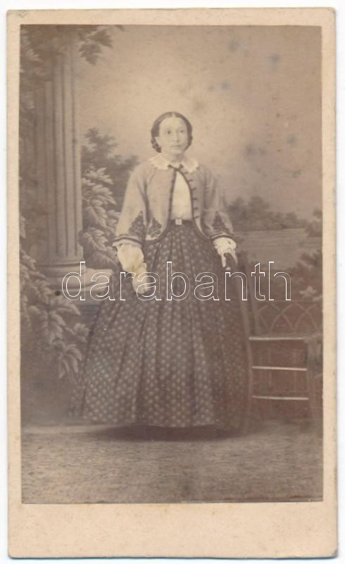 cca 1870 Zalay Juliska, akinek Zalay Ferenc nevű öccse 1848-1849-ben százados, majd Hont megye törvényszéki ügyésze volt, vizitkártya méretű, feliratozott, keményhátú fotó, 10x6 cm