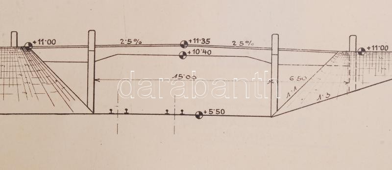 Beschreibung: 1915 Bp., A győri Teleszky úti híd terve, Lenarduzzi János építési vállalkozó pecsétjével, 3 db