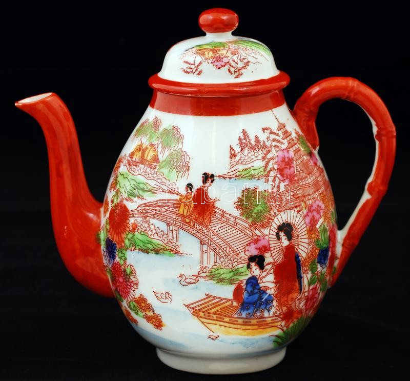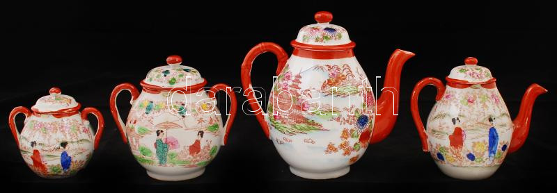 Beschreibung: 4 db gazdagon díszített japán teás és kávés kanna illetve tárolóedény, jelzett, kopásnyomokkal és lepattanásokkal, különböző méretben