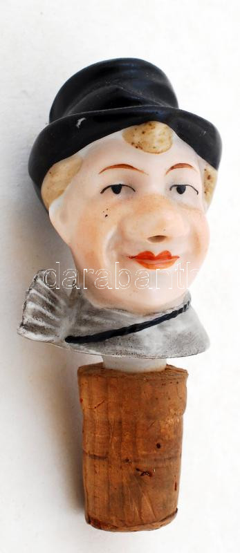 Beschreibung: Kézzel festett mókás porcelán-parafa dugó és kiöntő (orr résznél), apró festékhibával, h: 9 cm