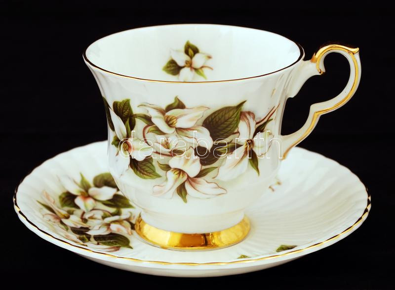 Beschreibung: White Trillium aranyozott porcelán virágos csésze és csészealj, hibátlan, jelzett, m: 7 cm, d: 14 cm