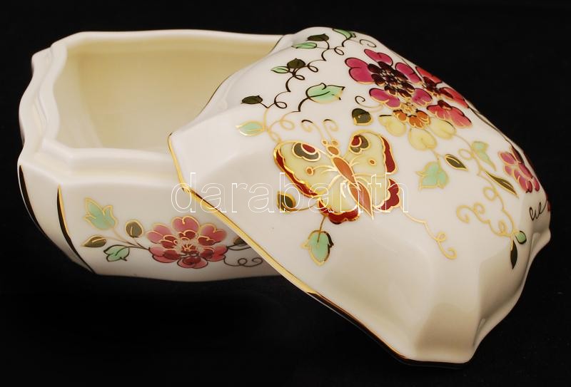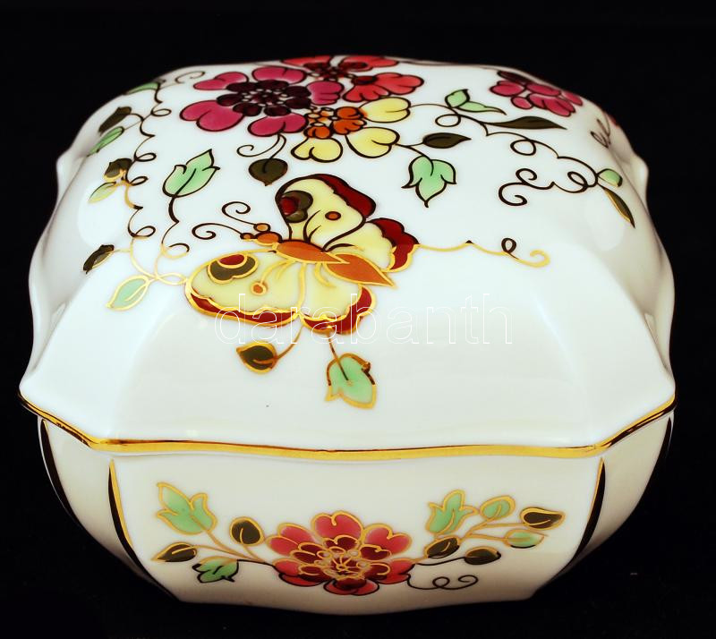 Beschreibung: Zsolnay pillangó mintás ékszeres doboz, kézzel festett, hibátlan, jelzett, 10x10 cm